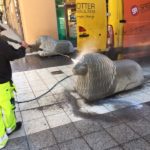 Våra jourklottersaneringsteam rycker ut med anledning av presskonferens om Stockholms nya betonglejon.